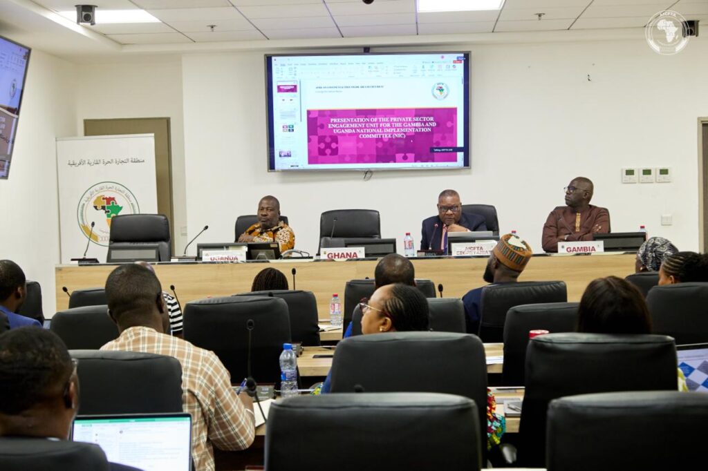 Accra, Ghana, 13 February 2026 – The African Continental Free Trade Area Secretariat hosted the National Implementation Committees (NICs) of Republic of Uganda and Republic of The Gambia, who were in Accra as part of a peer learning and benchmarking visit to the Ghana AfCFTA National Coordination Office.