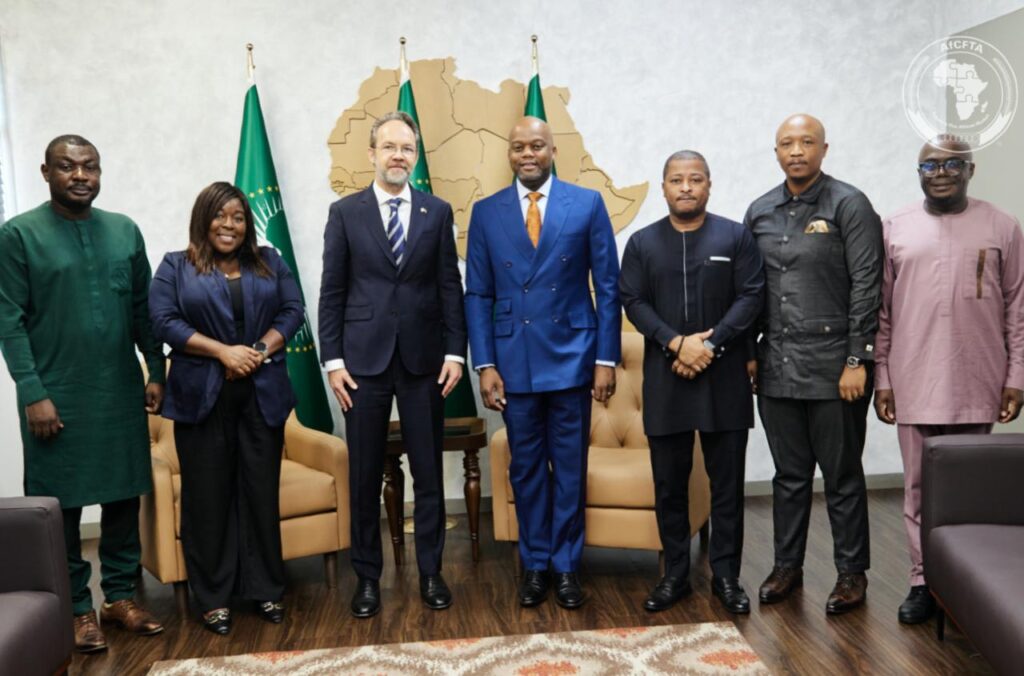Accra, Ghana, 18 March 2026 – H.E. Wamkele Mene, Secretary-General of the African Continental Free Trade Area (AfCFTA), received H.E. Christian Rogg, British High Commissioner to Ghana, during a courtesy visit to the AfCFTA Secretariat in Accra.