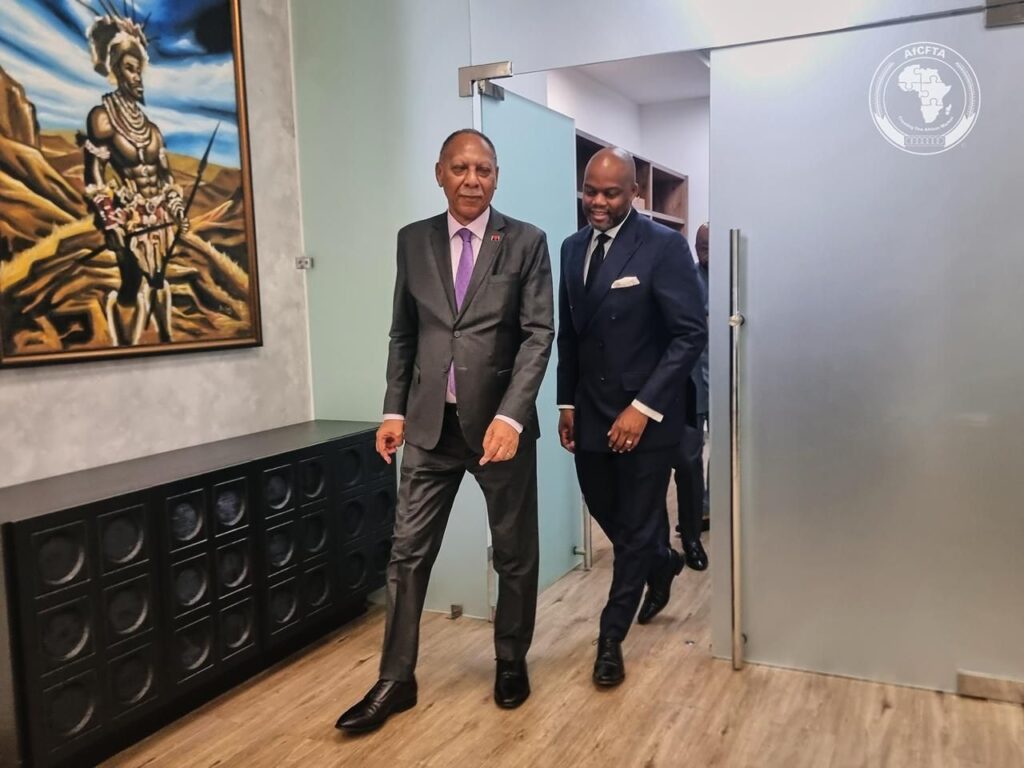 8 April, Accra, Ghana — AfCFTA Secretary-General, H.E. Wamkele Mene, received the newly accredited Ambassador of the Republic of Angola to the Republic of Ghana, H.E. Rui Orlando Xavier, during a courtesy visit to the AfCFTA Secretariat.
